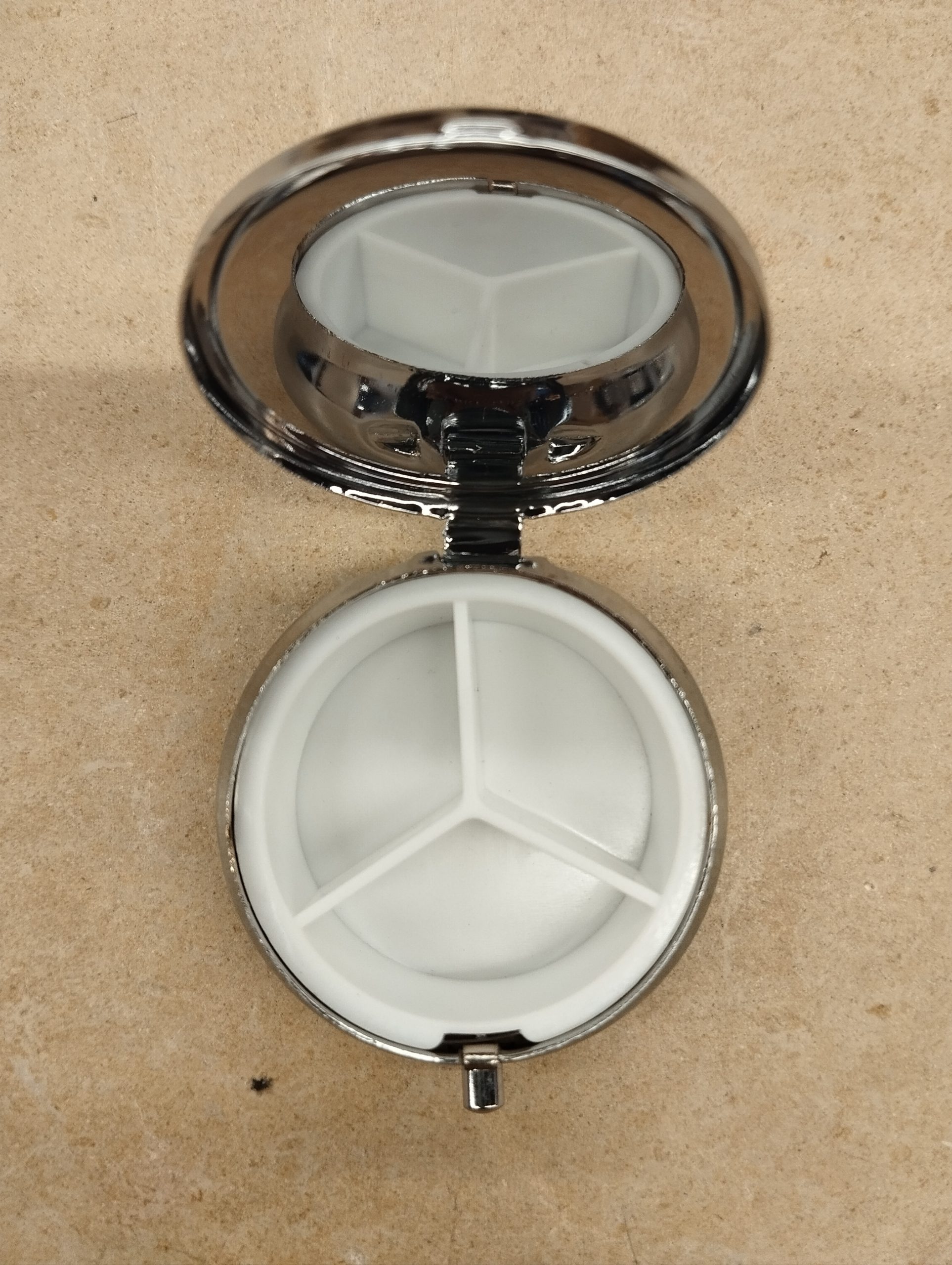 Pastillero redondo con imagen del Pantocrator, tres compartimentos